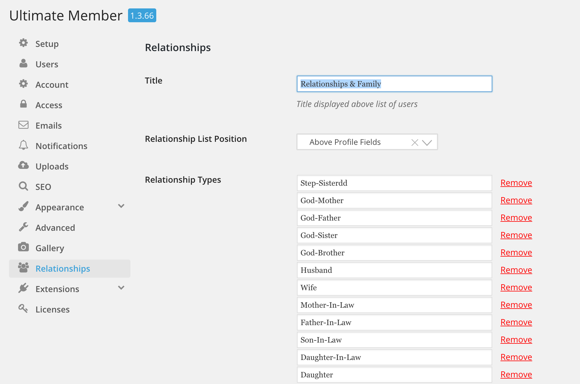 Relationships for Ultimate Member is an add-on that provides the option for user's to display their family and spouse relationships on their profile.